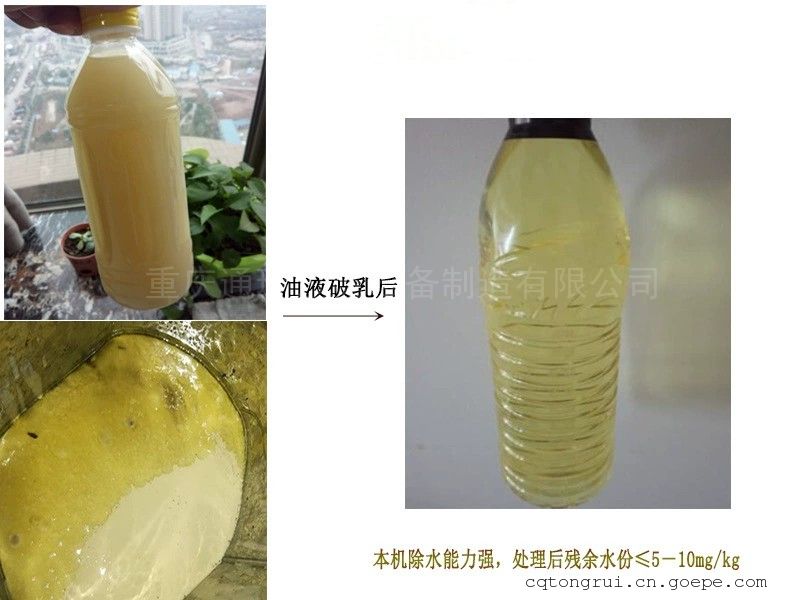 2、本机采用独特的三元一次脱水法和国际先进的强化亲水和流水原理,高效脱水,除彻底除掉液态水,还能清除游离水及85%的溶解水