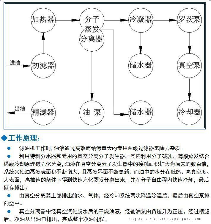 7、采用终身不换型薄膜蒸发技术和分子蒸发技术。既解除周期性更换破乳化滤芯的烦恼,降低滤油又减少劳动强度。
