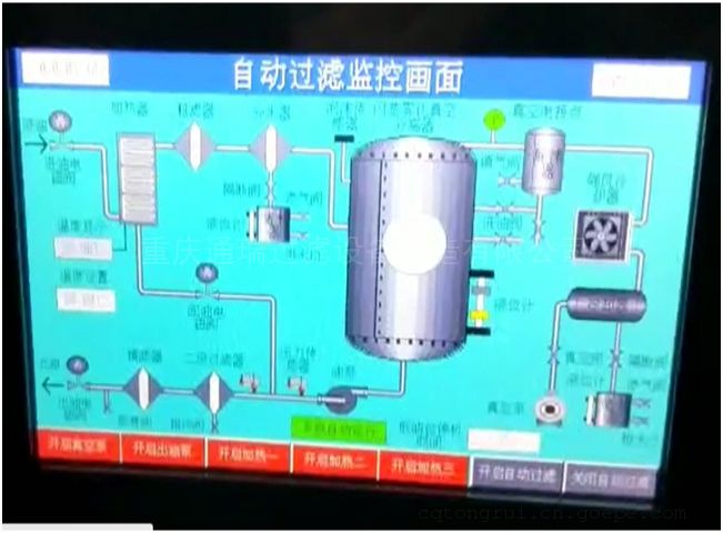 PLC全自动润滑油真空脱水过滤净油机有故障闪烁提醒的提示:当真空打不上、真空有泄漏或者压力过高时,系统产生报警信号,闪光灯闪烁,触摸屏右下角故障灯闪烁,直到按下触摸屏上故障灯上方的的解除报警按钮。