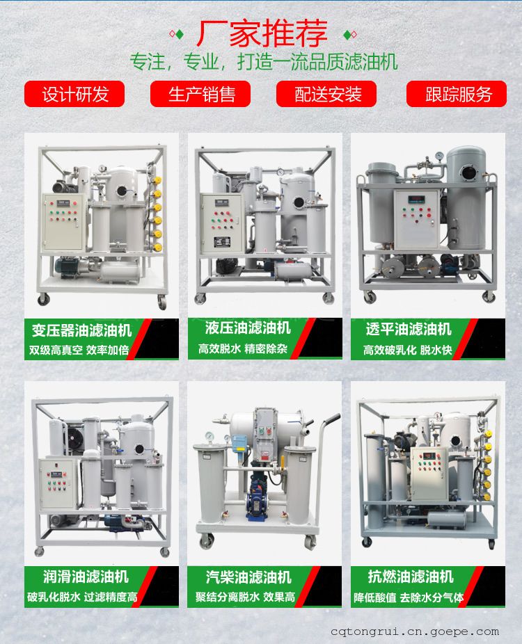 6. 流量多样化,有每分钟30L、50L、80L、100L、200L等等。客户可根据自家的待处理油液总量来选择设备的型号