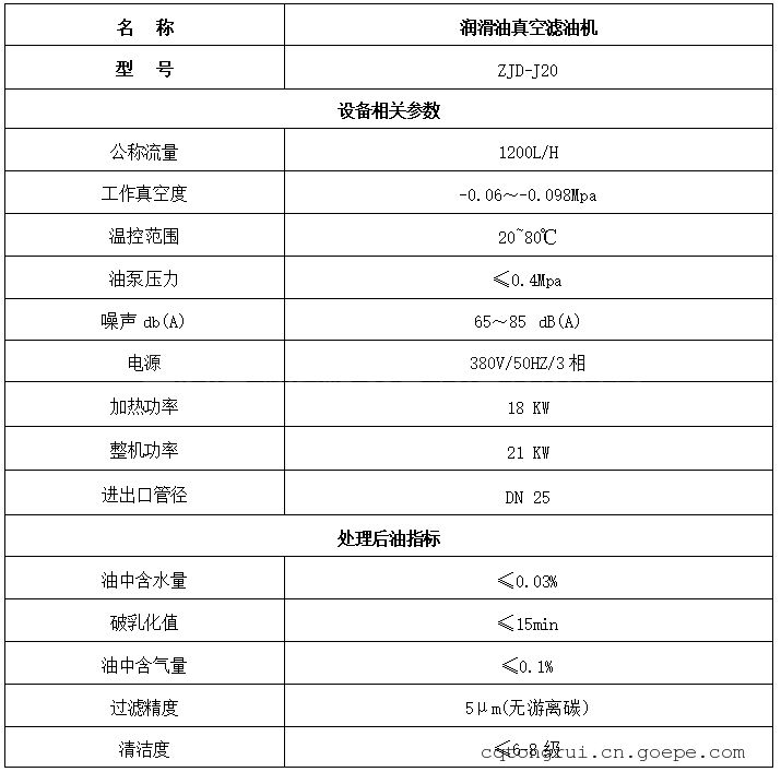 详细信息| 询价留言品牌:通瑞 原理:真空过滤 样式:立式 适用对象:润滑油 型号:ZJD-J20 滤料类型:纤维 性能:高效过滤 额定流量:1.2 m3/h 工作压力:0.4 MPa 工作噪声:60-80 dB 进出口管径:25 mm 破乳化值:15 min 清洁度:6-8 NAS 外形尺寸:1350*1100*1600 mm 有效过滤面积:0.4 ㎡ 整机功率:26 kw 外形尺寸:1350*1100*1600 mm 有效过滤面积:0.4 ㎡ 润滑油真空脱水滤油机集真空干燥、分离工程技术、冷凝技术、破乳化技术及精密过滤技术于一体。在高真空状态下能迅速可靠地脱去油中的水分、气体、杂质、胶质、油泥和各种色素等,并降低介损和酸值,提高破乳化度,全面提高油的品质,能实现在线运行,可不停机自动排水,使废油达到新油的使用标准,操作简便。